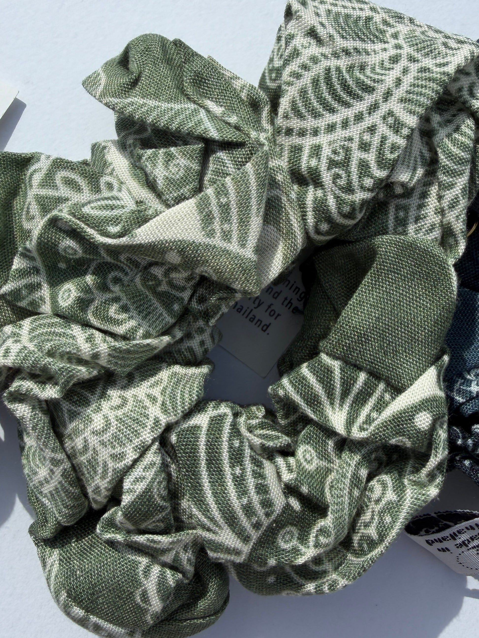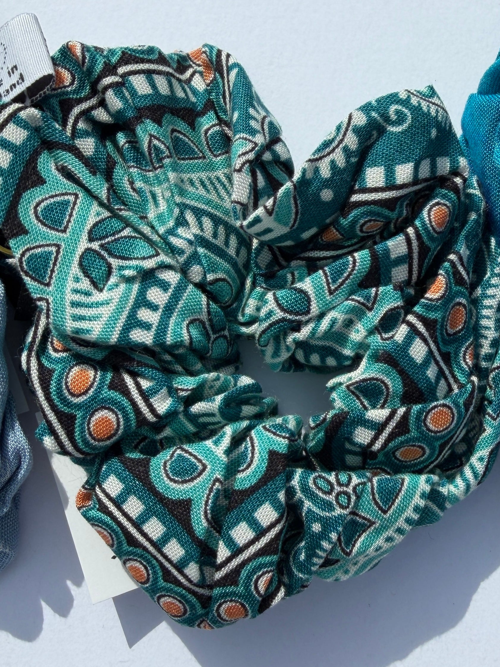 These scrunchies are crafted from upcycled fabric, reducing waste. They are hand sewn by artisans in Thailand.